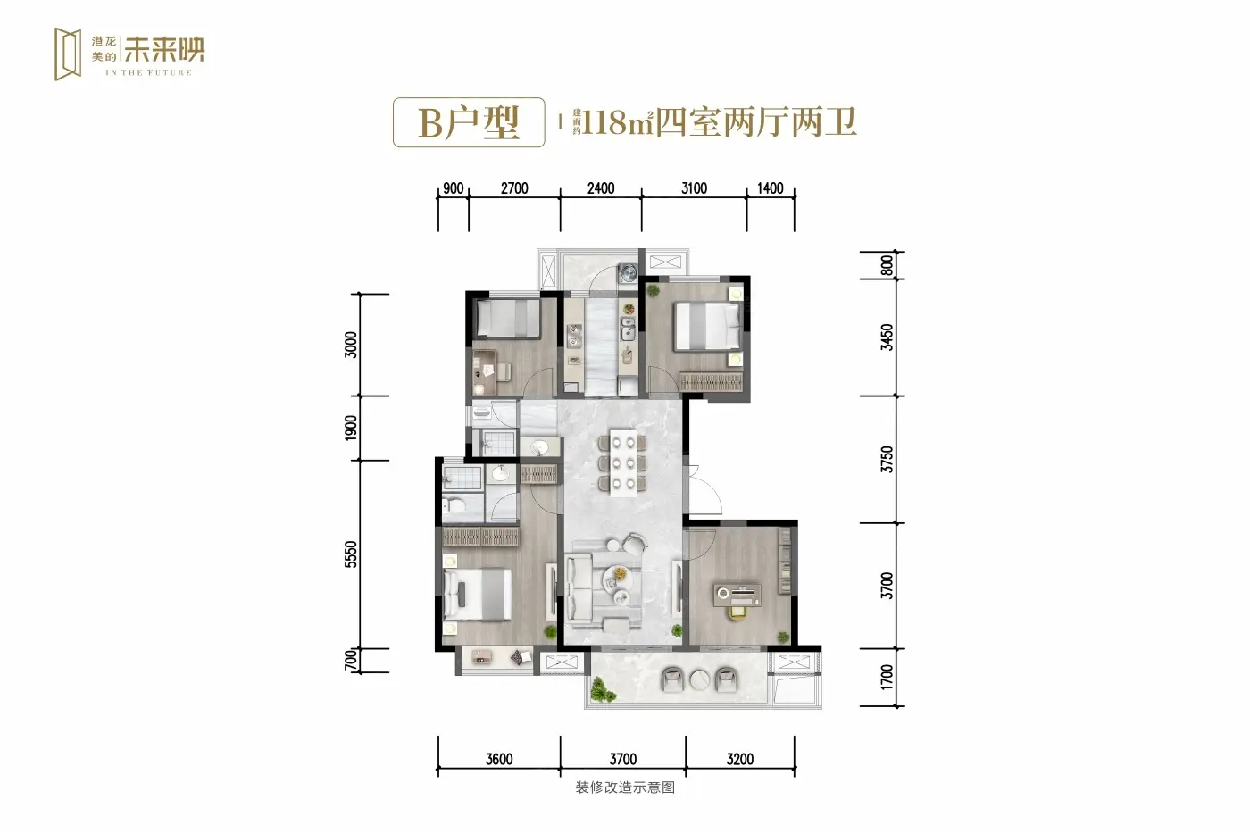 B户型 4室2厅1厨2卫 118.00㎡