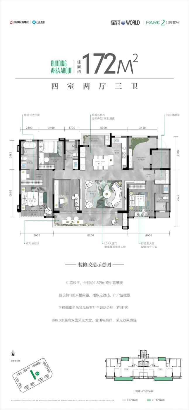 172㎡户型 4室2厅2厨3卫 172.00㎡
