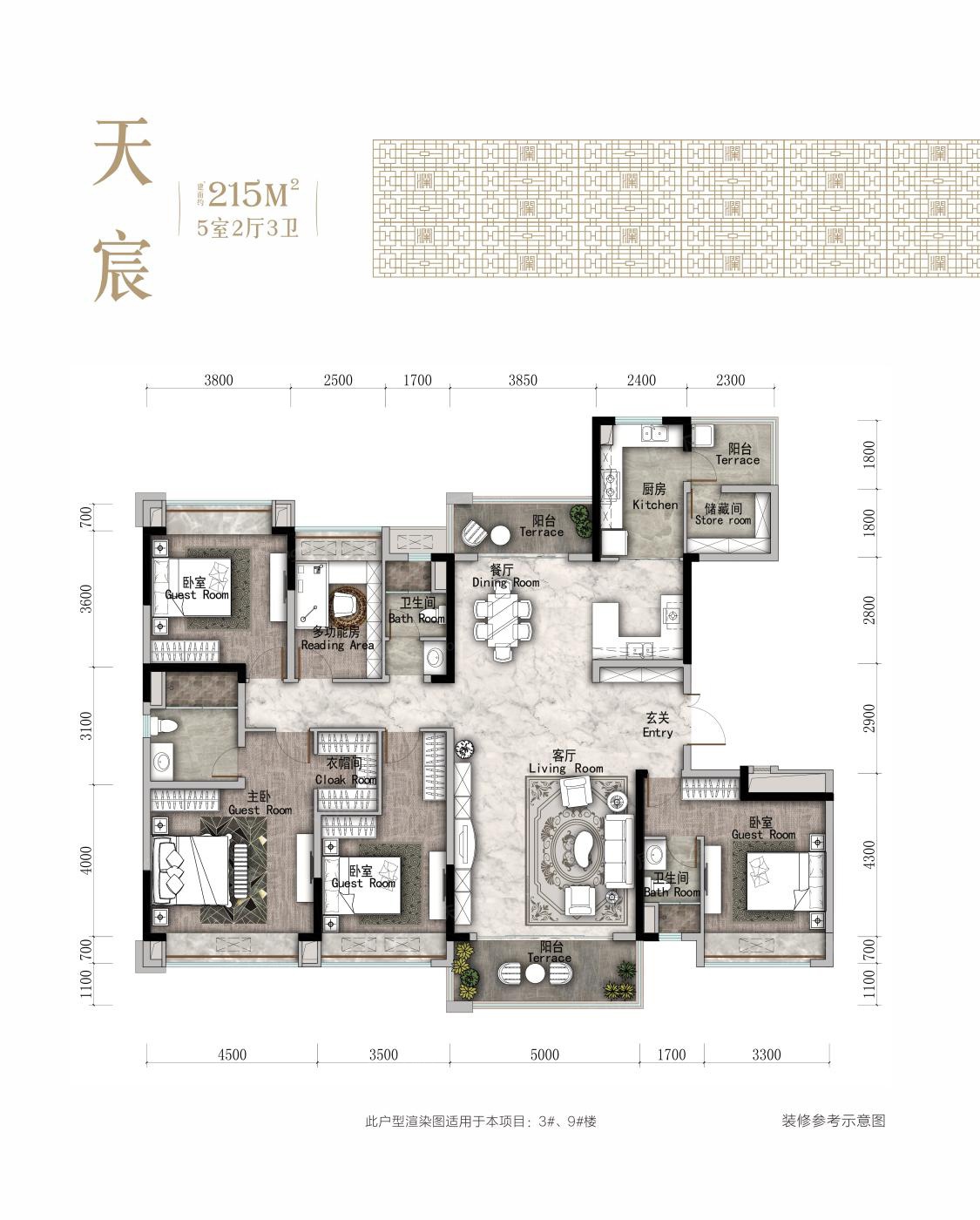 215㎡天宸户型 5室2厅1厨3卫 215.00㎡