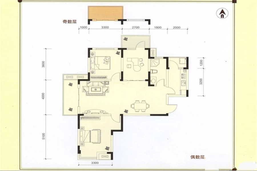 3-2-1户型106 3室2厅1厨1卫 106.00㎡