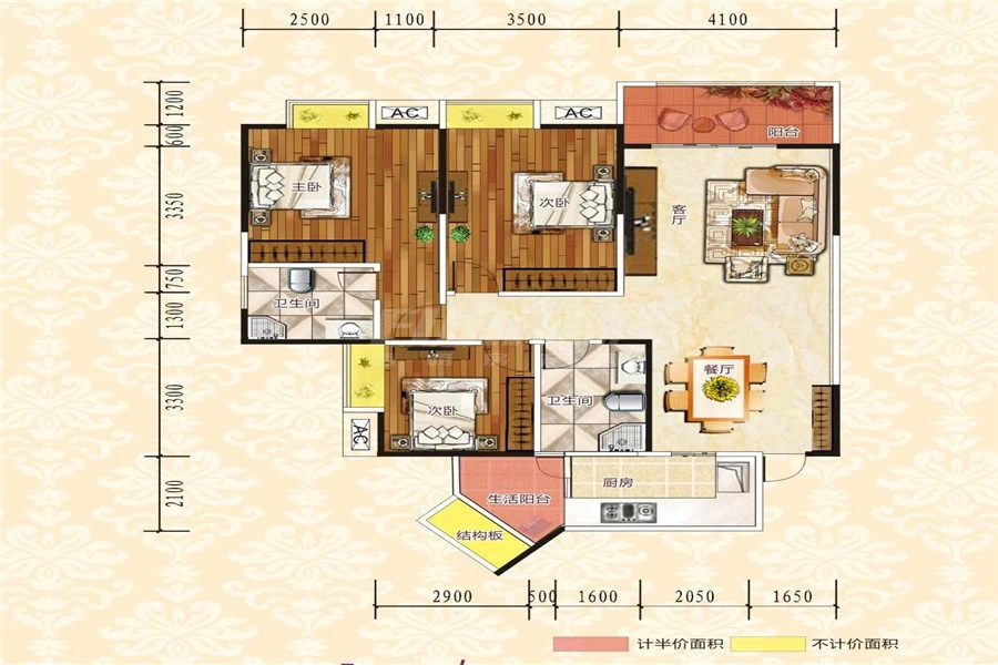 1户型库3室2厅2卫 3室2厅1厨2卫 126.00㎡